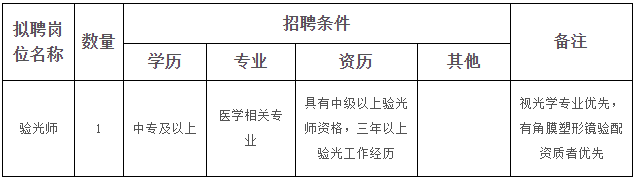 因視光科業(yè)務(wù)發(fā)展需要,現(xiàn)面向社會(huì)公開(kāi)招聘合同制人員如下: