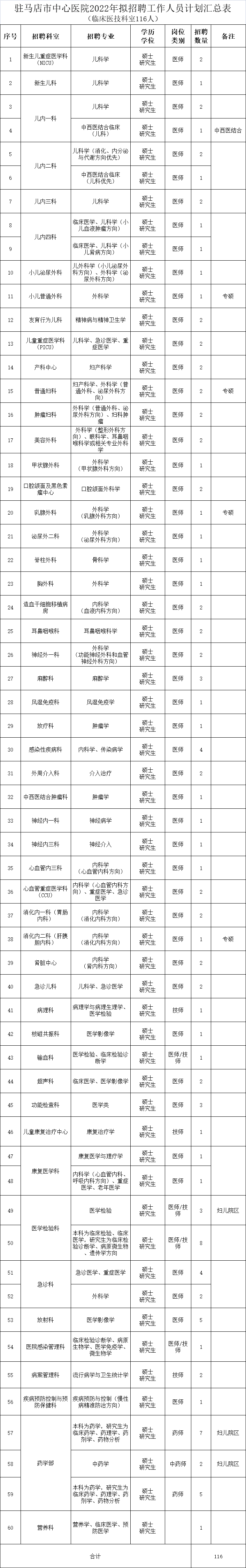 河南省駐馬店市中心醫(yī)院2022年招聘專業(yè)技術(shù)人員116人