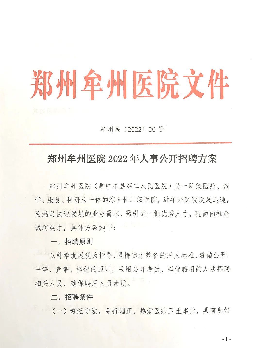 河南省鄭州牟州醫(yī)院2022年招聘優(yōu)秀人才36人