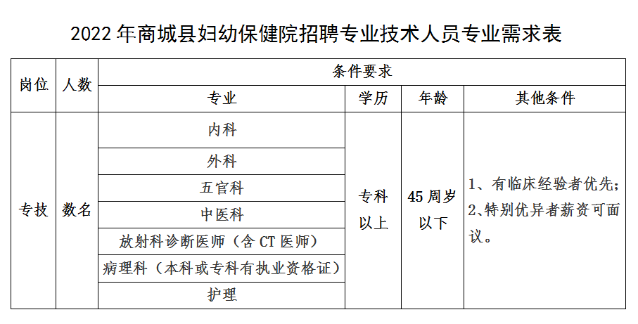 2、報名地點:商城縣婦幼保健院老院區(qū)四樓人事科(城關鎮(zhèn)赤城路北路1號)