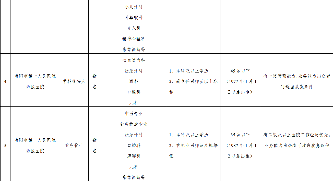 南陽市第一人民醫(yī)院高層次人才、學(xué)科帶頭人和優(yōu)秀青年骨干招聘公告