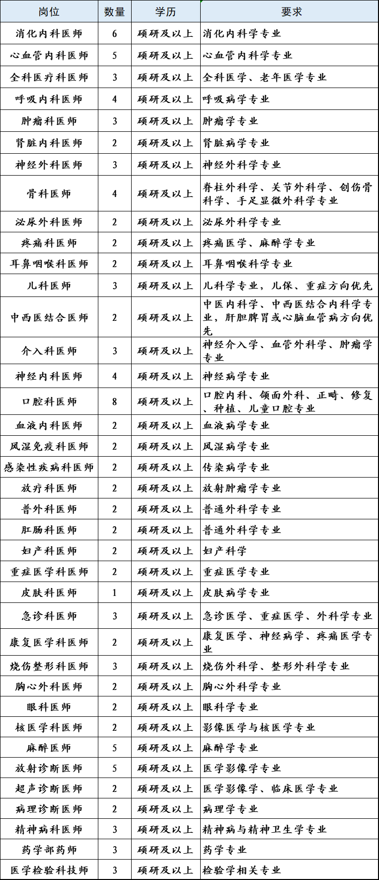濮陽市油田總醫(yī)院2023年人才需求表