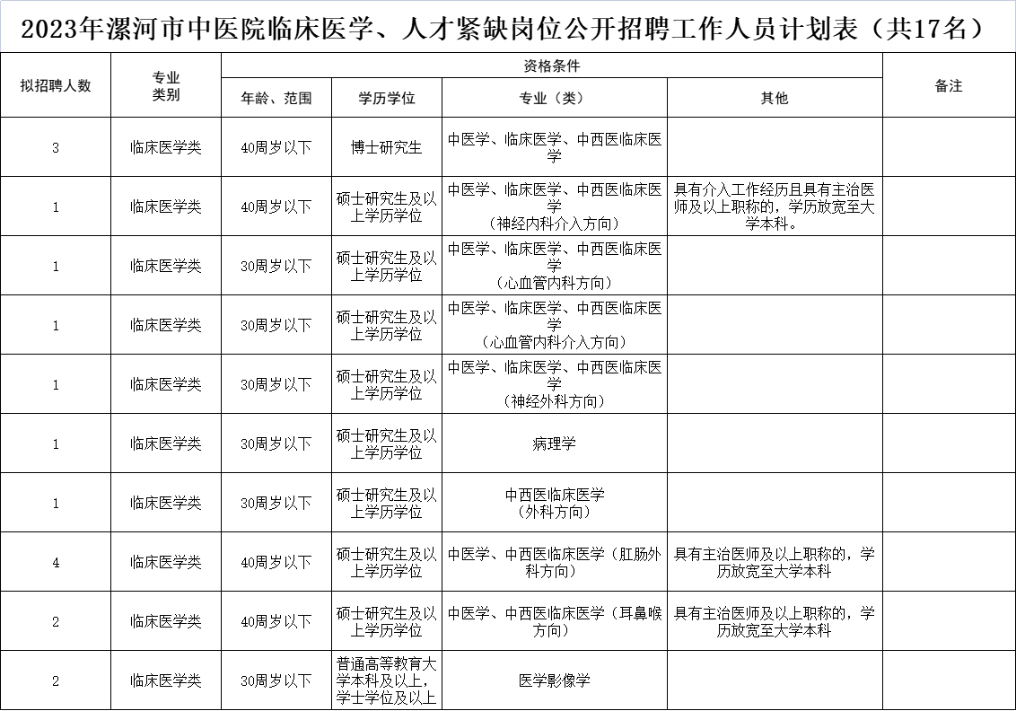 二、臨床醫(yī)學(xué)類、人才緊缺崗位招聘