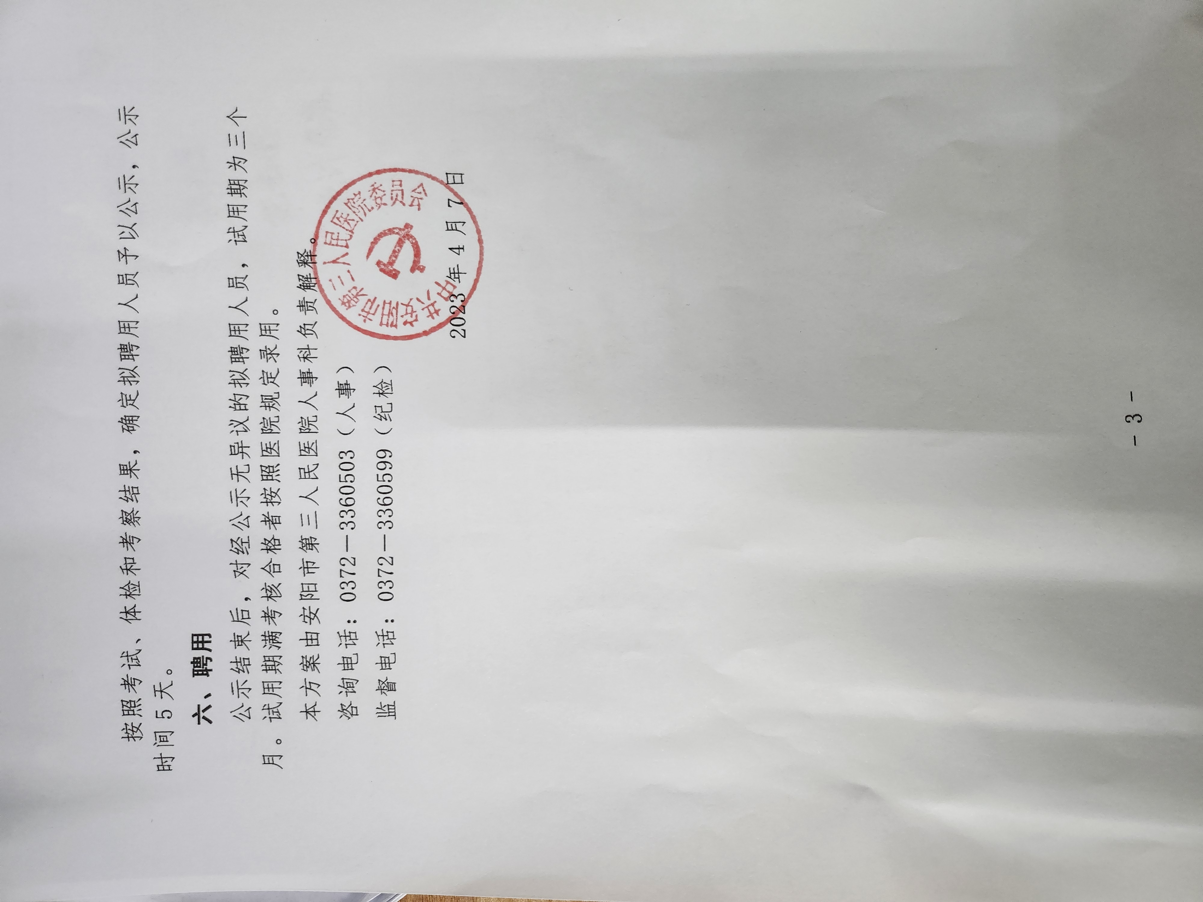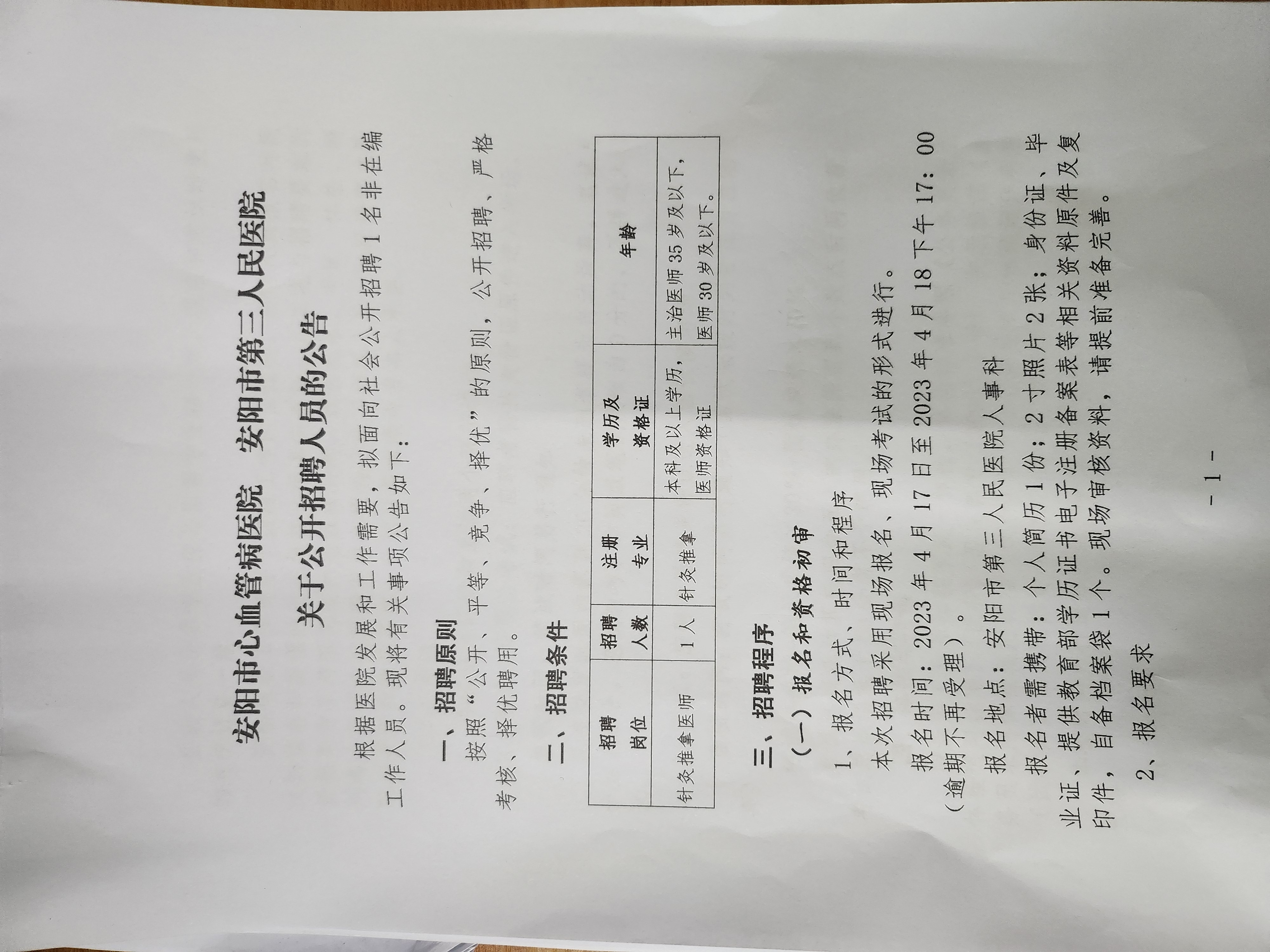 河南省安陽(yáng)市第三人民醫(yī)院2023年4月招聘針灸推拿醫(yī)師1名