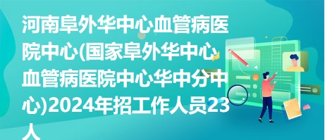 河南阜外華中心血管病醫(yī)院中心(國家阜外華中心血管病醫(yī)院中心華中分中心)2024年招工作人員23人