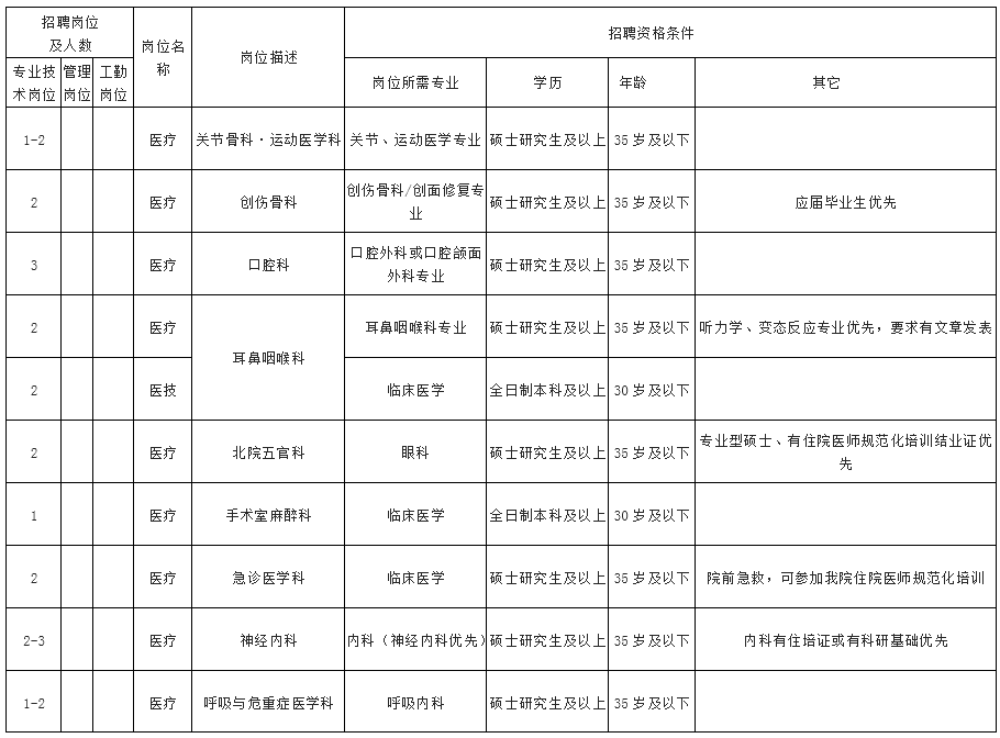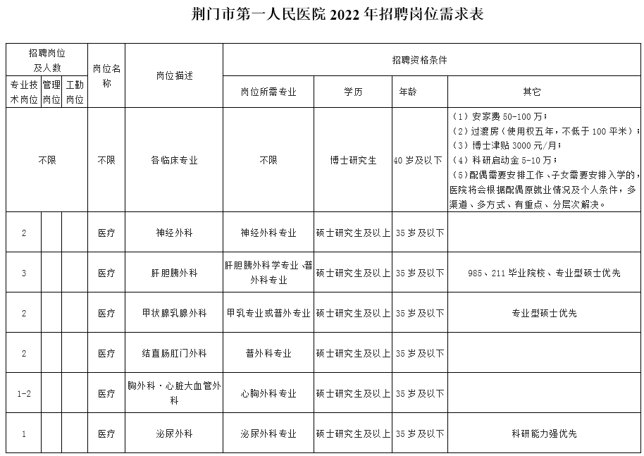 詳見下表《荊門市第一人民醫(yī)院2022年招聘崗位需求表》