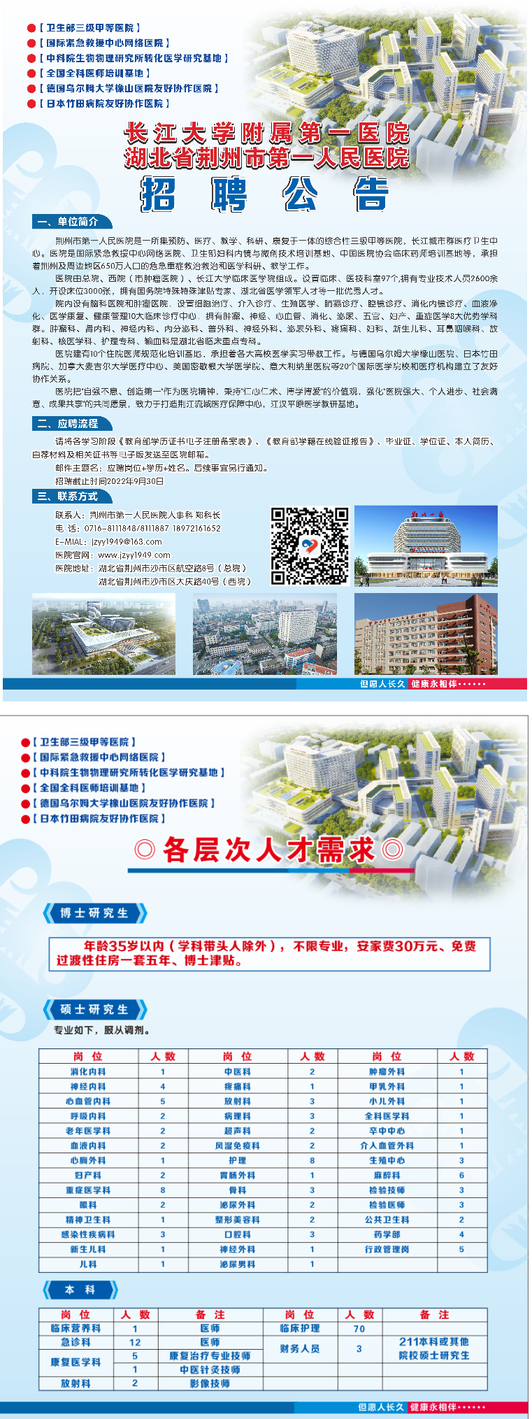 荊州市第一人民醫(yī)院2022年各層次人才招聘公告
