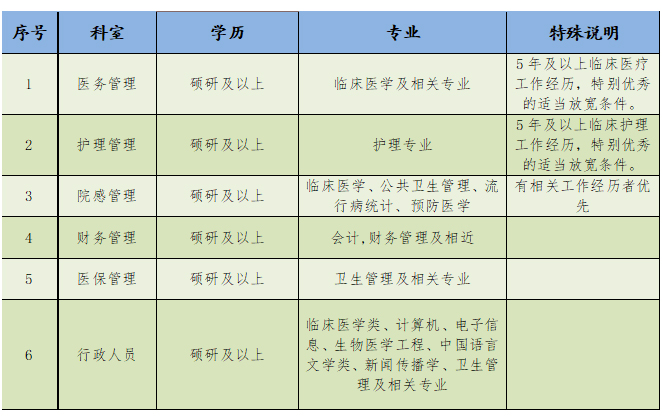 3、至少五年及以上三甲醫(yī)院工作經(jīng)歷,有專(zhuān)業(yè)科室行政副主任及以上任職經(jīng)歷;