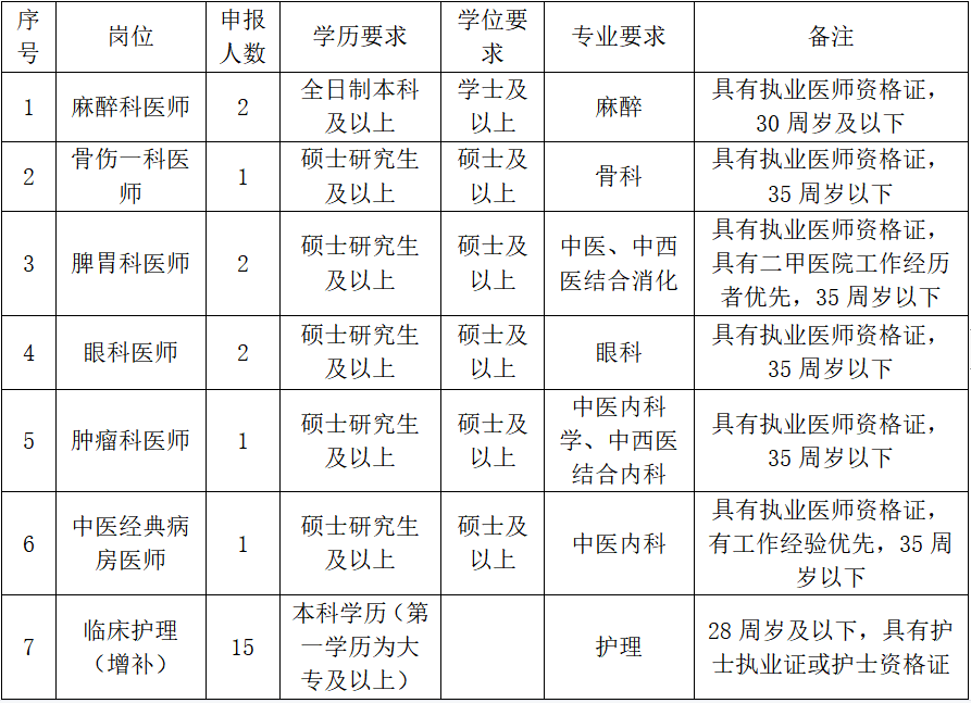 1.崗位條件:招聘科室、專業(yè)、人數(shù)見下表: