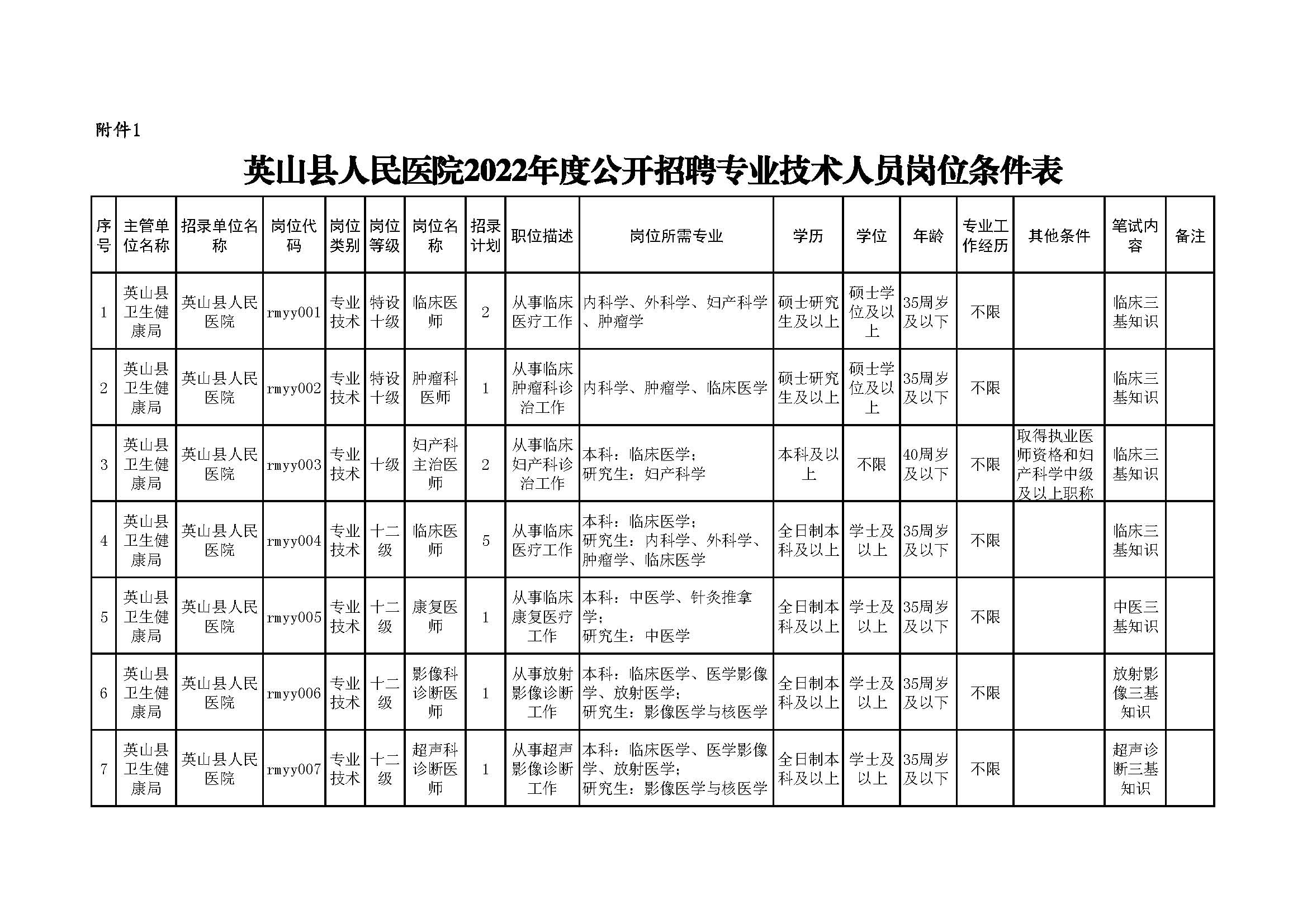 本次計(jì)劃招聘13人。招聘崗位、人數(shù)及資格條件詳見(jiàn)《英山縣人民醫(yī)院2022年度公開(kāi)招聘專業(yè)技術(shù)人員崗位表》(附件1,以下簡(jiǎn)稱《崗位表》)。
