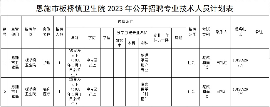 湖北省恩施市板橋鎮(zhèn)衛(wèi)生院招聘臨床醫(yī)生1名、護(hù)士1名
