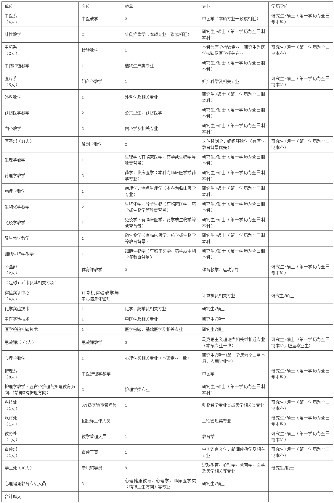 湖北中醫(yī)藥高等專科學(xué)校2023年招聘工作人員50人