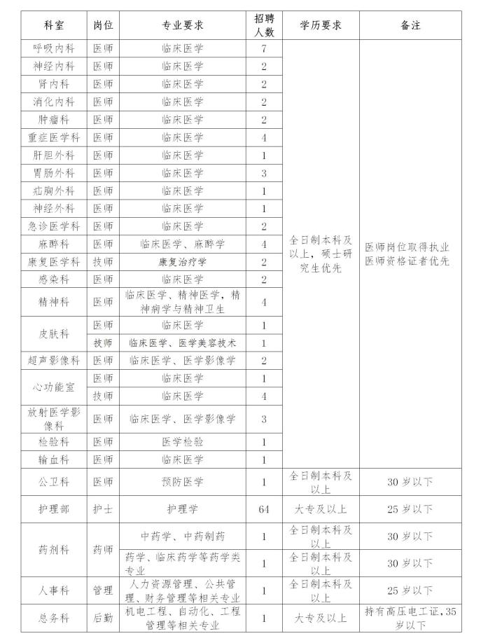 因業(yè)務(wù)發(fā)展需要,公安縣人民醫(yī)院現(xiàn)面向社會(huì)招聘相關(guān)專(zhuān)業(yè)技術(shù)人才及后勤人員若干名。現(xiàn)將有關(guān)事項(xiàng)公告如下: