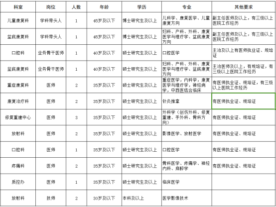 (備注:學(xué)科帶頭人、業(yè)務(wù)骨干崗位特別優(yōu)秀者,招聘條件可適當(dāng)放寬。)
