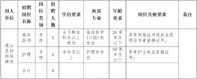 咸寧市通山縣婦幼保健院招衛(wèi)生專業(yè)技術(shù)人員8人