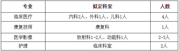 臨床醫(yī)療、影像專業(yè)常年招聘。護理人員、康復技師于11月22-26日攜帶身份證、資格證書、畢業(yè)證書、簡歷等招聘崗位規(guī)定條件所需資料至人力資源科報名或網(wǎng)上投遞資料。