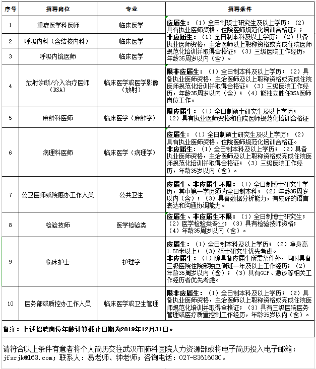 因醫(yī)院業(yè)務(wù)發(fā)展的需求,擬招聘醫(yī)務(wù)人員若干名,具體如下表:
