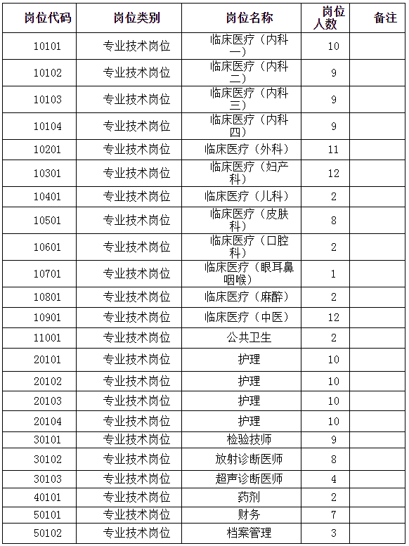 荊州市荊州區(qū)2019年引進衛(wèi)生專業(yè)技術人才崗位表