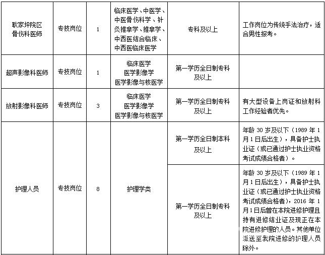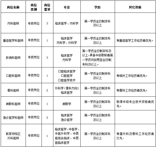4、醫(yī)師崗位:持有執(zhí)業(yè)醫(yī)師資格證;一般專業(yè)年齡35歲及以下(1984年1月1日后出生),碩士、博士研究生或高級職稱年齡可適當放寬。