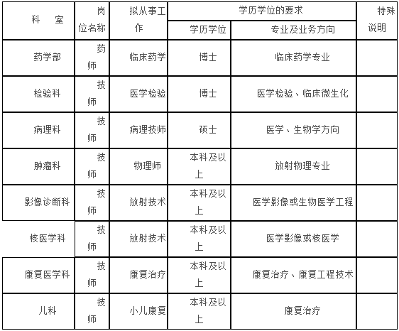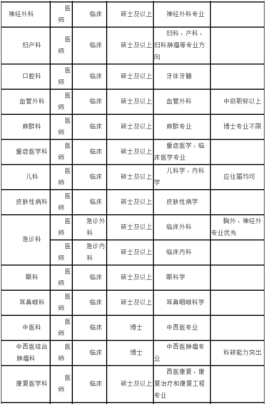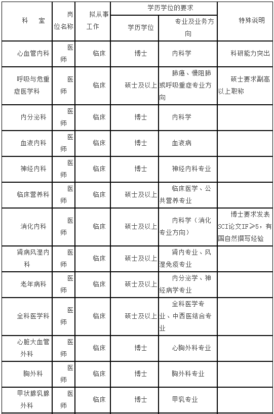 4、臨床技能型緊缺人才:根據(jù)科室需求及實(shí)際工作需要,對(duì)于有特殊專長(zhǎng)且臨床科室急需的技能型人才,可適當(dāng)放寬錄用條件。