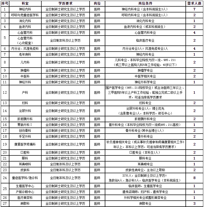 醫(yī)院以習近平新時代中國特色社會主義思想為引領,堅持依法辦院、以德治院、科學理院、科教興院、科技強院的方針,勇往直行,開拓創(chuàng)新,大力推動醫(yī)院高質(zhì)量發(fā)展,在醫(yī)療質(zhì)量、學科建設、科研創(chuàng)新、人才隊伍、黨的建設上全面提升醫(yī)院核心競爭力,現(xiàn)面向社會公開招聘優(yōu)秀醫(yī)學人才: