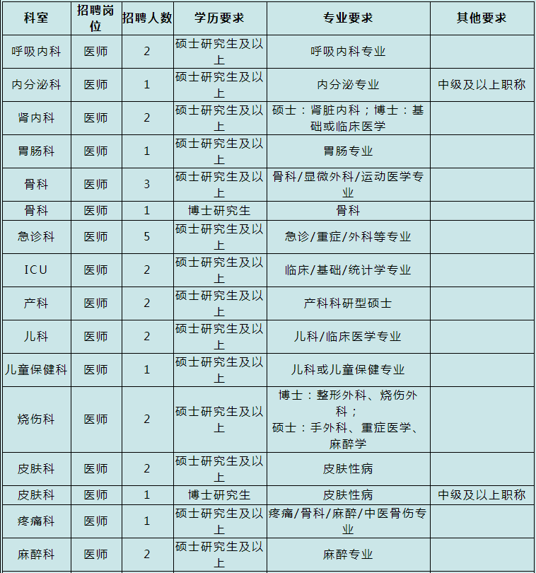 (5)三級甲等醫(yī)院相關(guān)專業(yè)十年以上工作經(jīng)歷,兼具科室管理經(jīng)驗,優(yōu)秀者可適當放寬。