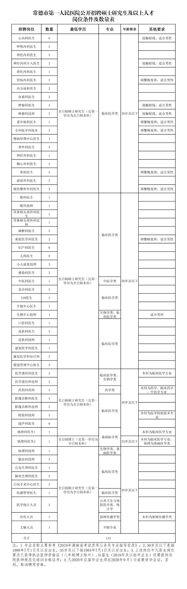 附件:常德市第一人民醫(yī)院公開招聘全日制碩士研究生及以上學歷人才崗位條件及數(shù)量表