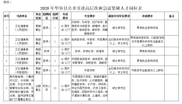 湖南省華容縣2020年11月份招聘高層次和急需緊缺人才40人崗位計(jì)劃表: