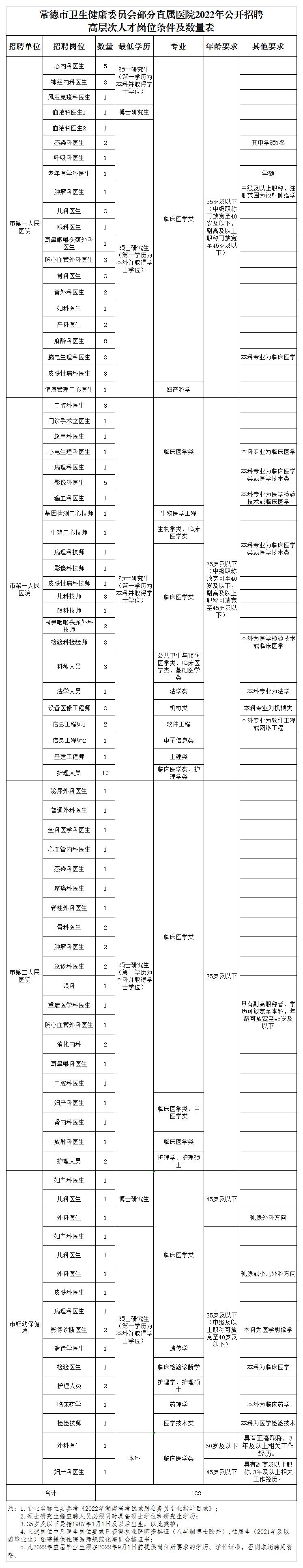 常德市衛(wèi)生健康委員會(huì)部分直屬醫(yī)院2022年招聘高層次人才138名
