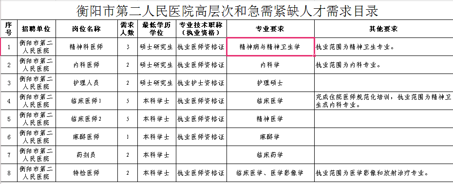 衡陽市第二人民醫(yī)院引進人才資格條件及政策待遇嚴格按照《衡陽市關(guān)于發(fā)布2022年度高層次和急需緊缺專業(yè)技術(shù)人才引進需求目錄的公告》()執(zhí)行。