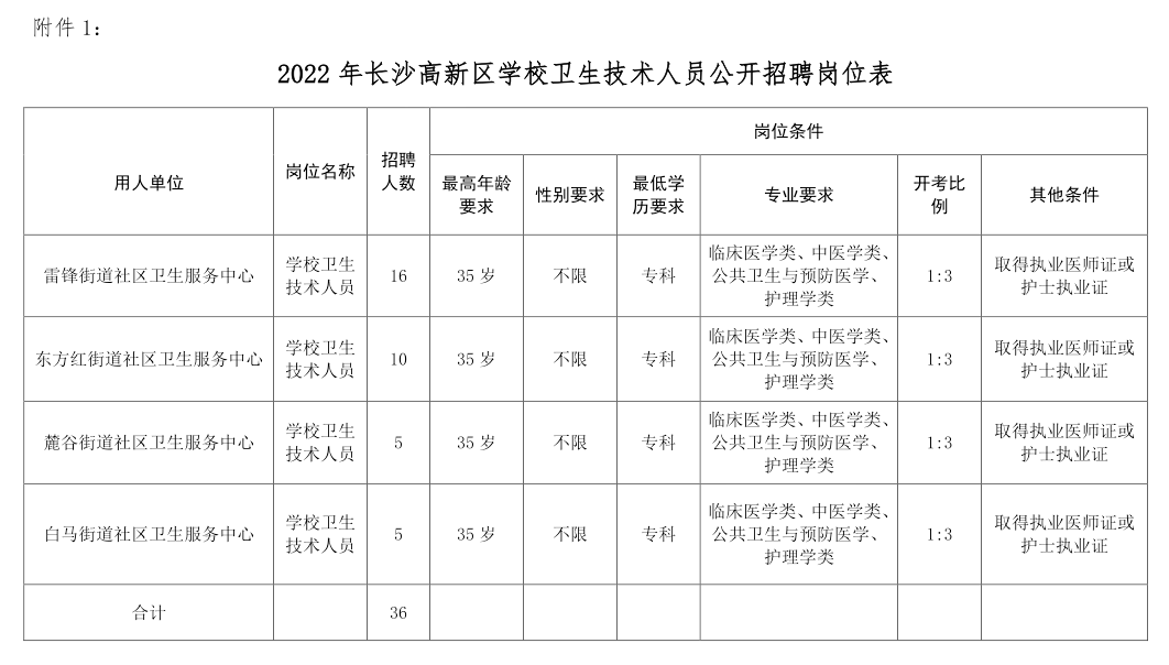附件1:《2022年長沙高新區(qū)學(xué)校衛(wèi)生技術(shù)人員公開招聘崗位表》