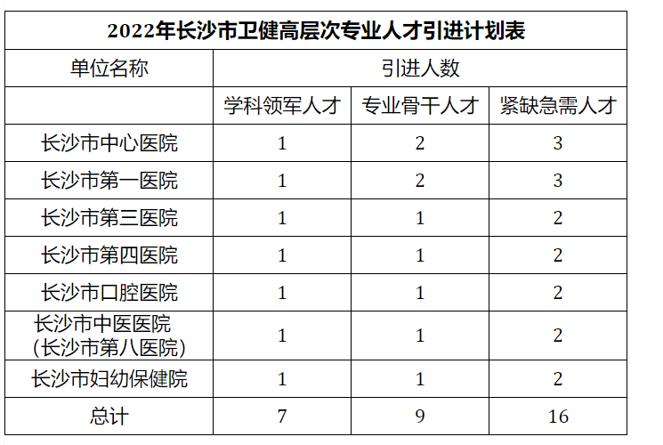 附件:2022年長(zhǎng)沙市衛(wèi)生健康高層次專(zhuān)業(yè)人才引進(jìn)崗位表
