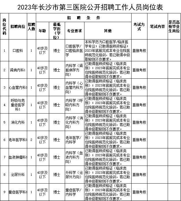 長沙市第三醫(yī)院人事科咨詢電話:0731-85171617,13787257899(文)