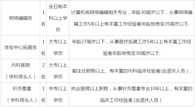 根據(jù)醫(yī)院業(yè)務(wù)發(fā)展需要,現(xiàn)面向社會公開招聘如下聘用制工作人員。