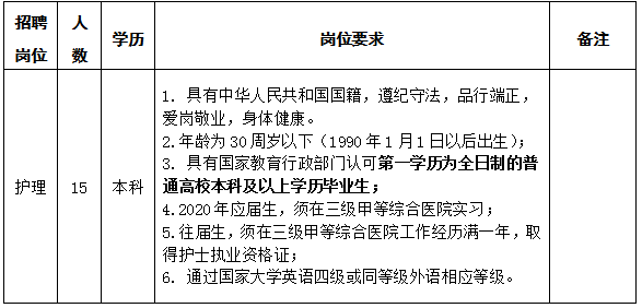 以上就是“關(guān)于2020年淮安市第二人民醫(yī)院【江蘇省】公開招聘15名護(hù)理工作人員的預(yù)公告”的通知內(nèi)容。