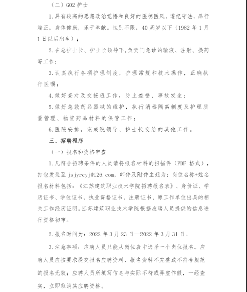 2022年江蘇建筑職業(yè)技術(shù)學(xué)院校醫(yī)院招聘工作人員2名