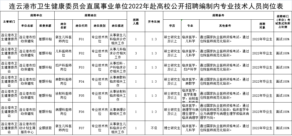 連云港市婦幼保健院2022年第一批赴高校招聘編制內(nèi)專業(yè)技術(shù)人員10人
