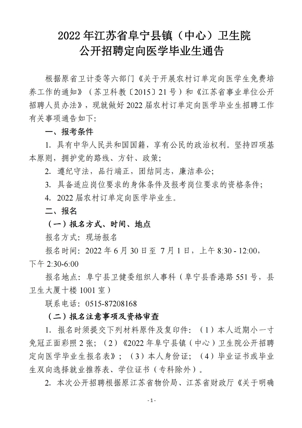 鹽城市阜寧縣鎮(zhèn)(中心)衛(wèi)生院2022年招聘定向醫(yī)學(xué)畢業(yè)生20人