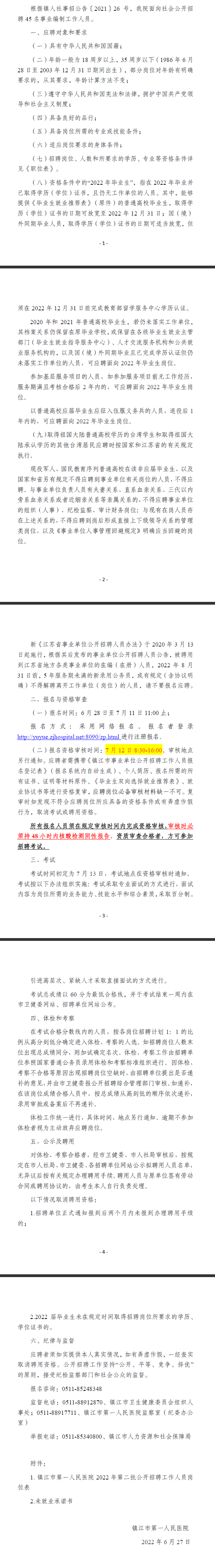 江蘇省鎮(zhèn)江市第一人民醫(yī)院2022年第二批招聘事業(yè)編制工作人員45名