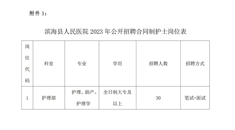 5.具備崗位資格條件,詳見(jiàn)附件1《濱??h人民醫(yī)院2023年公開(kāi)招聘合同制護(hù)士崗位表》。
