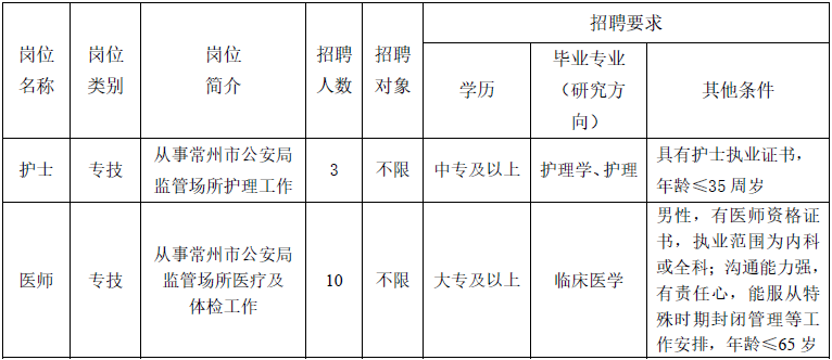 江蘇省常州市2023年1月招聘市公安局監(jiān)管場(chǎng)所醫(yī)療工作人員13名