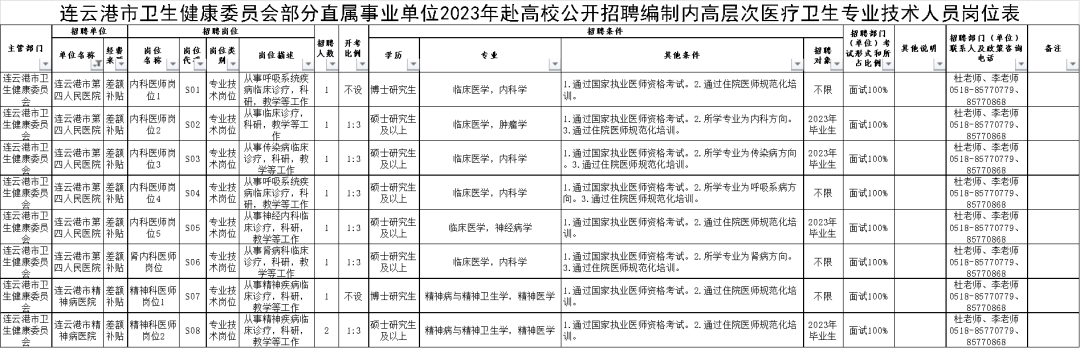 連云港市人力資源和社會保障局招聘公告:連云港市衛(wèi)生健康委員會部分直屬事業(yè)單位2023年赴高校公開招聘編制內醫(yī)療衛(wèi)生專業(yè)技術人員公告