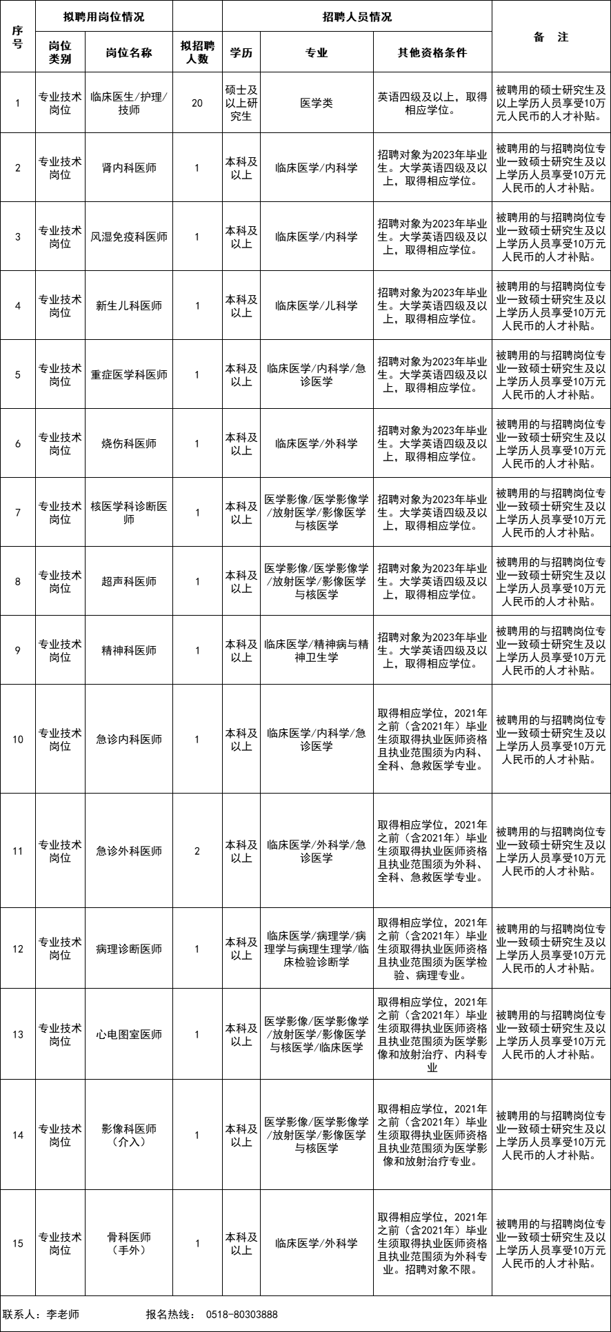 江蘇省連云港市東??h人民醫(yī)院2023年招聘工作人員35人