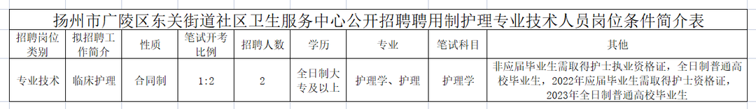 揚州市廣陵區(qū)東關街道社區(qū)衛(wèi)生服務中心招聘護士2名