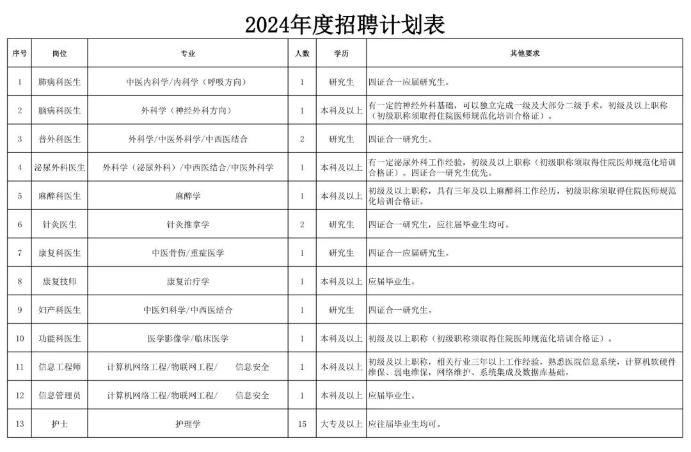 根據(jù)醫(yī)院發(fā)展規(guī)劃,按照公平公正、擇優(yōu)錄取的原則,面向社會招聘優(yōu)秀醫(yī)學人才。