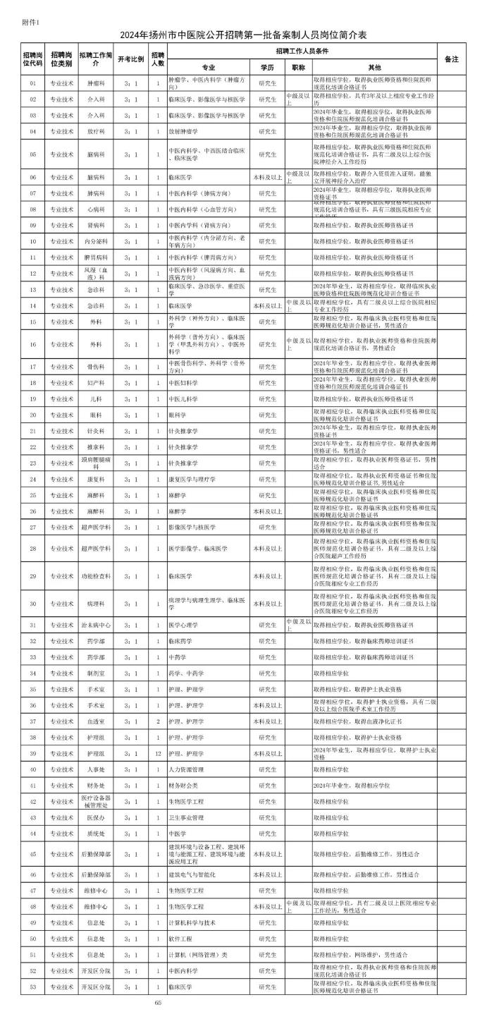 附件1:2024年揚(yáng)州市中醫(yī)院公開招聘第一批備案制人員崗位簡(jiǎn)介表