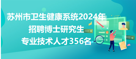 根據(jù)《江蘇省事業(yè)單位公開(kāi)招聘人員辦法》(蘇辦發(fā)〔2020〕9號(hào))有關(guān)規(guī)定,經(jīng)蘇州市人力資源和社會(huì)保障局批準(zhǔn),2024年蘇州市衛(wèi)生健康系統(tǒng)面向社會(huì)長(zhǎng)期公開(kāi)招聘博士研究生專(zhuān)業(yè)技術(shù)人才356名(事業(yè)編制)?,F(xiàn)將有關(guān)事項(xiàng)公告如下: