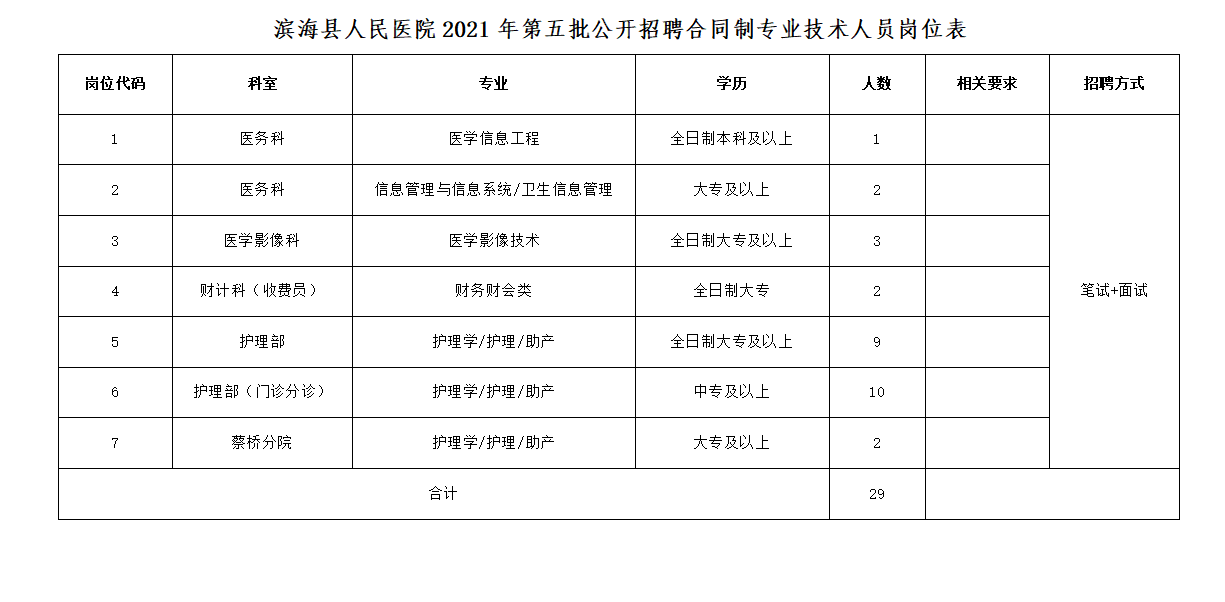鹽城市濱??h人民醫(yī)院招聘合同制專業(yè)技術(shù)人員29名