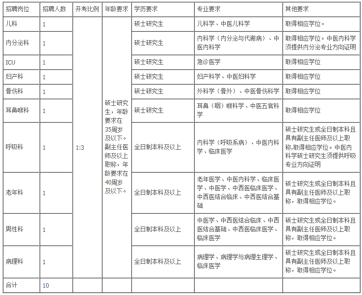 4.碩士學歷,年齡在35周歲及以下(指1984年9月3日及以后出生,其余依此類推。)。取得副高職稱或博士學位年齡在40周歲及以下;