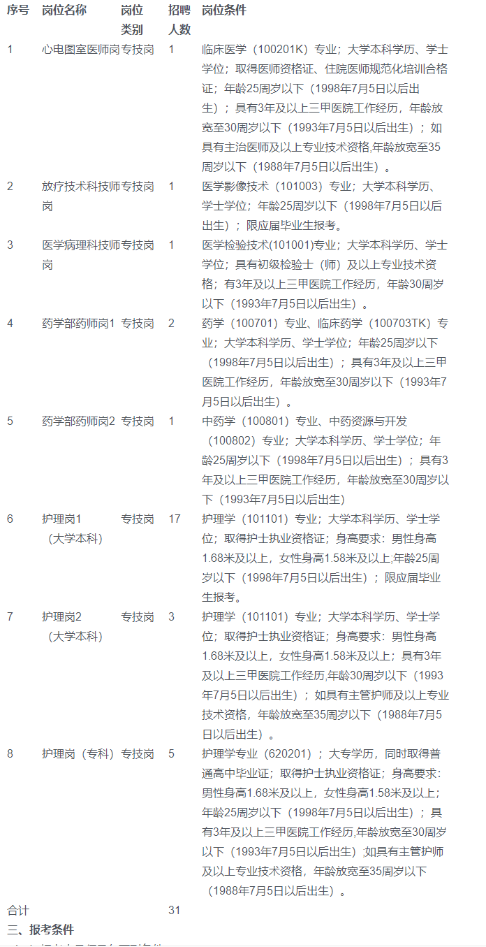 2.待遇。擬聘用人員實行編制外合同管理,待遇按醫(yī)院相關規(guī)定執(zhí)行。